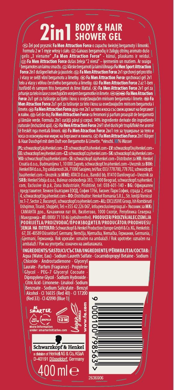 Odkryj żel pod prysznic Fa Men Attraction Force. Dzięki wzbogaconej w feromony formule żadna kobieta Ci się nie oprze! Do ciała i włosów.