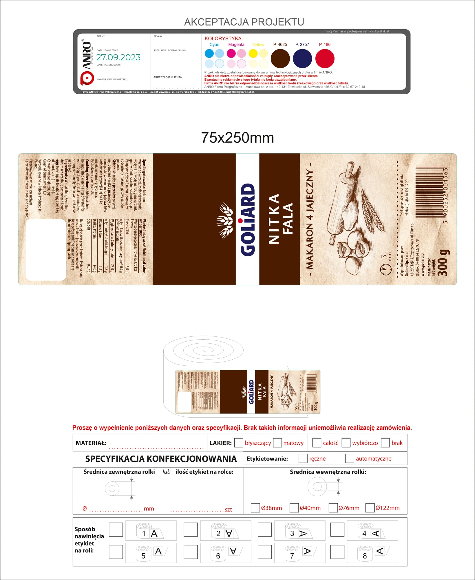 | Składniki | Mąka z PSZENICY zwyczajnej, semolina-mąka z PSZENICY durum, pasteryzowana masa JAJOWA 16% (odpowiada proporcji 4 jaj na 1 kg mąki), kurkuma-przyprawa. |