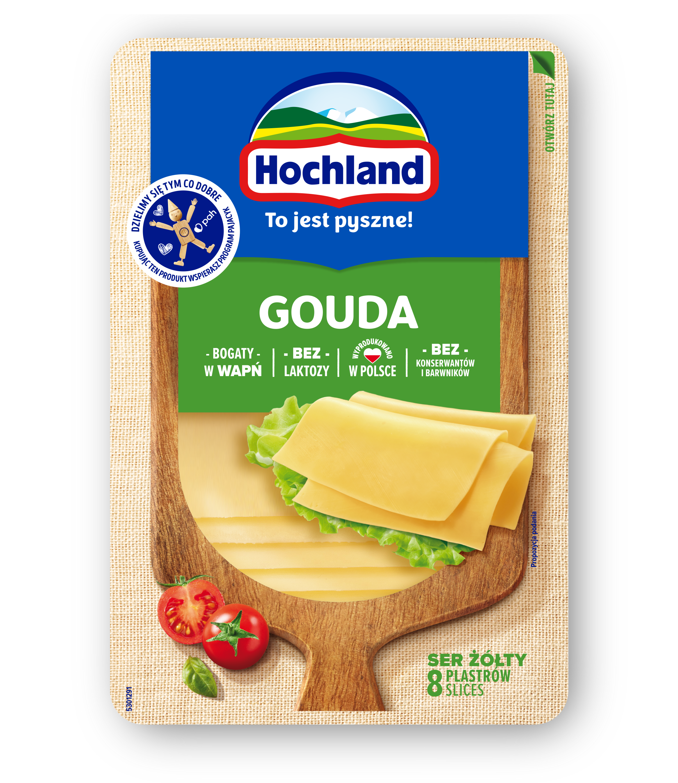 Hochland Gouda ser żółty w plastrach. Ser podpuszczkowy dojrzewający.