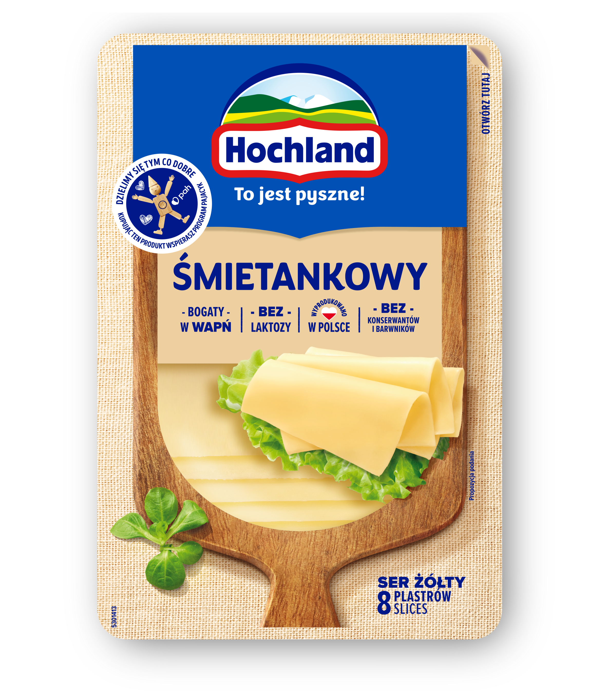Hochland Śmietankowy ser żółty w plastrach. Ser podpuszczkowy dojrzewający