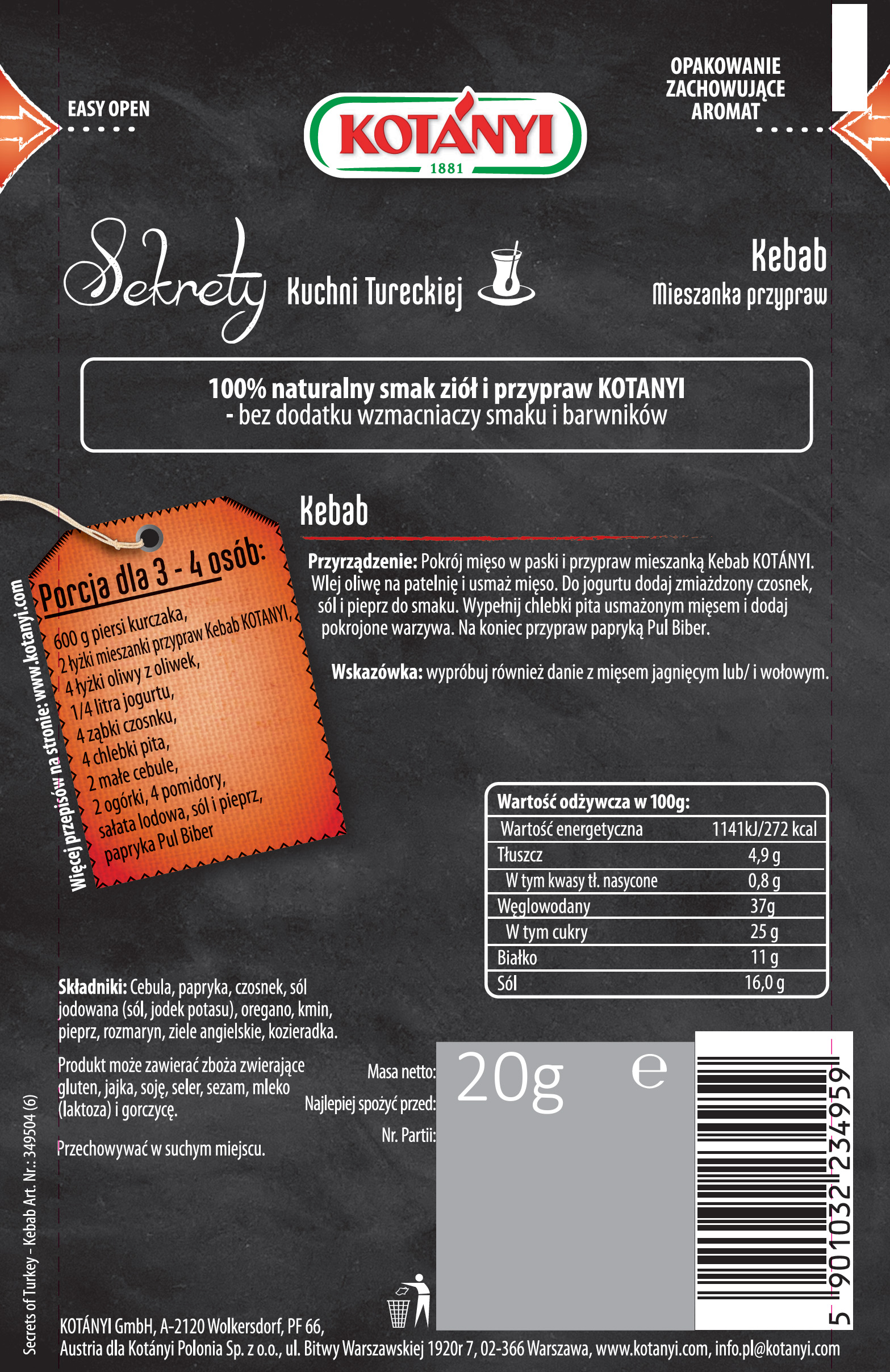 Kotányi Sekrety Kuchni Tureckiej Kebab Mieszanka przypraw 20 g