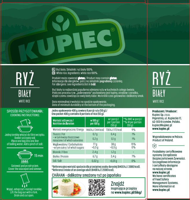 Jedno opakowanie 400 g zawiera 8 porcji ryżu.