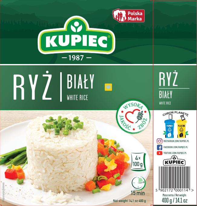Kupiec Ryż biały długoziarnisty 400 g (4 torebki)