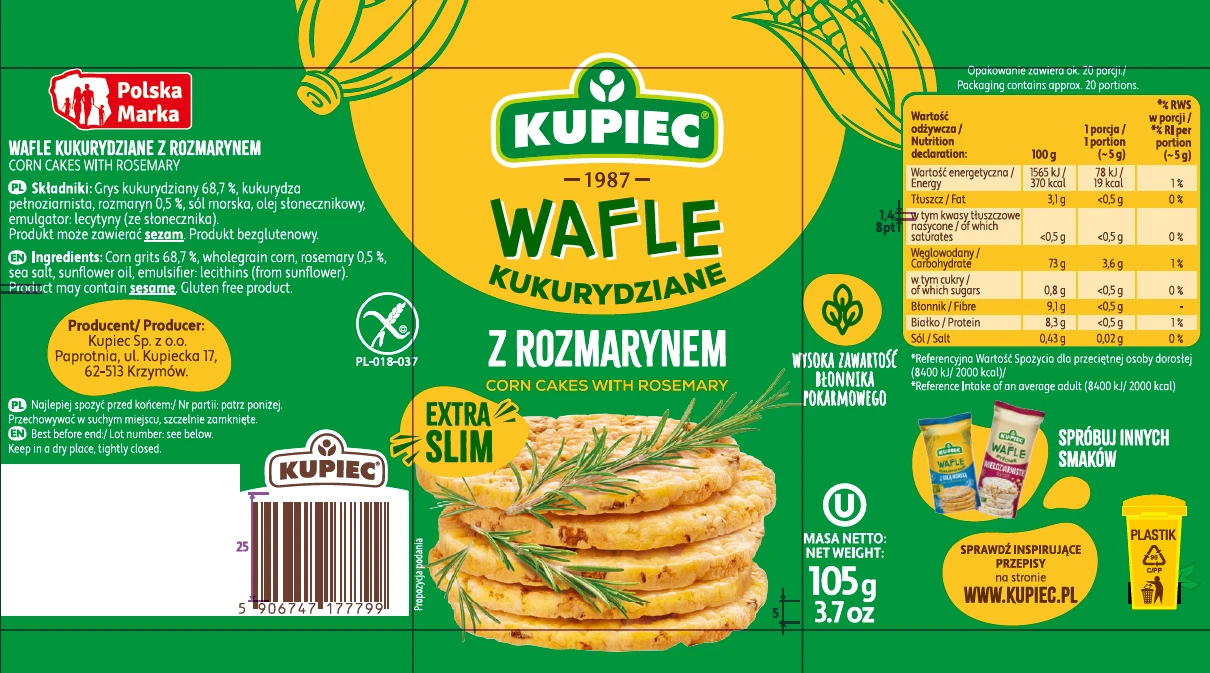 Kupiec WAFLE KUKURYDZIANE 105g Z ROZMARYNEM