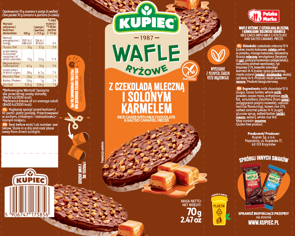 Kupiec wafle ryżowe z czekoladą mleczną i karmelem 70 g