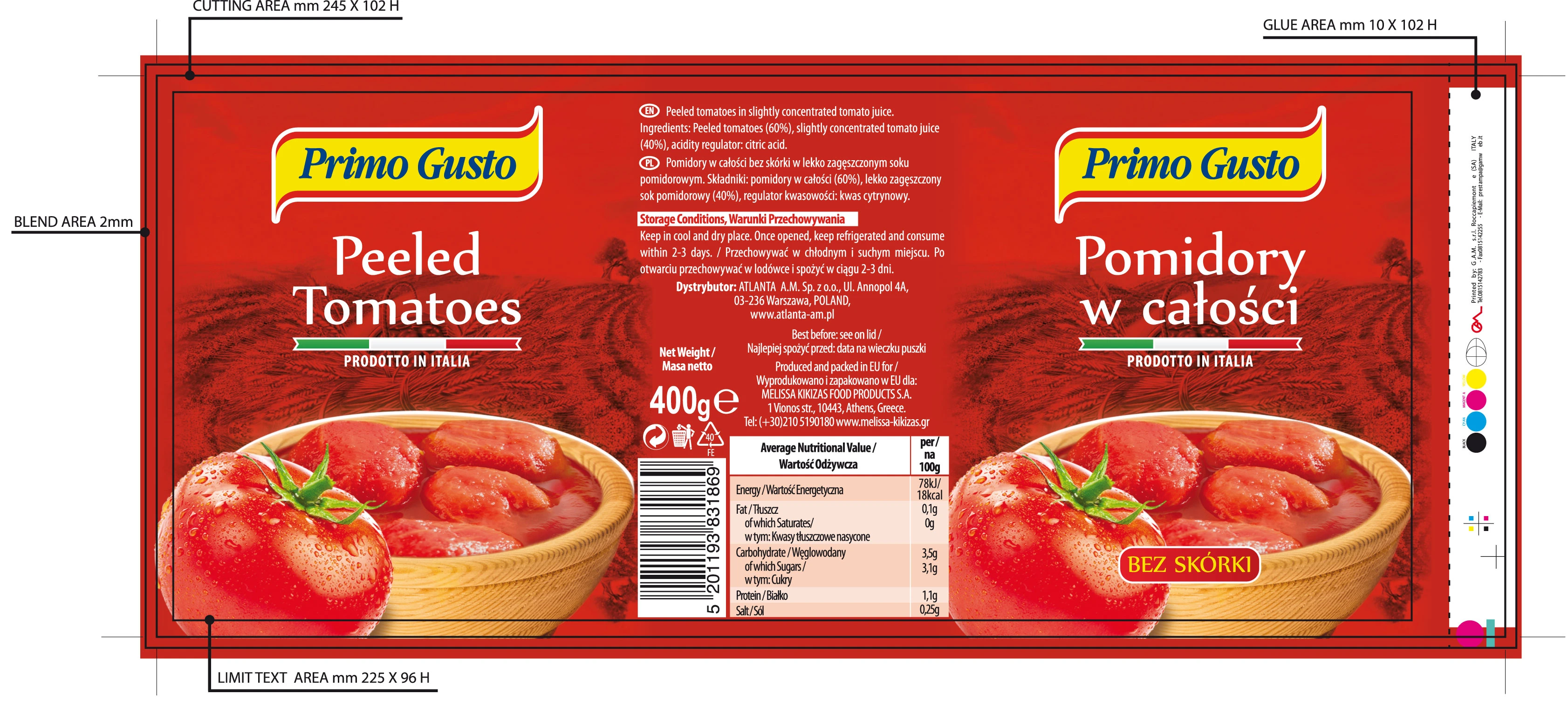 Melissa Primo Gusto Tomatera Pomidory bez skórki całe w puszce 400 g