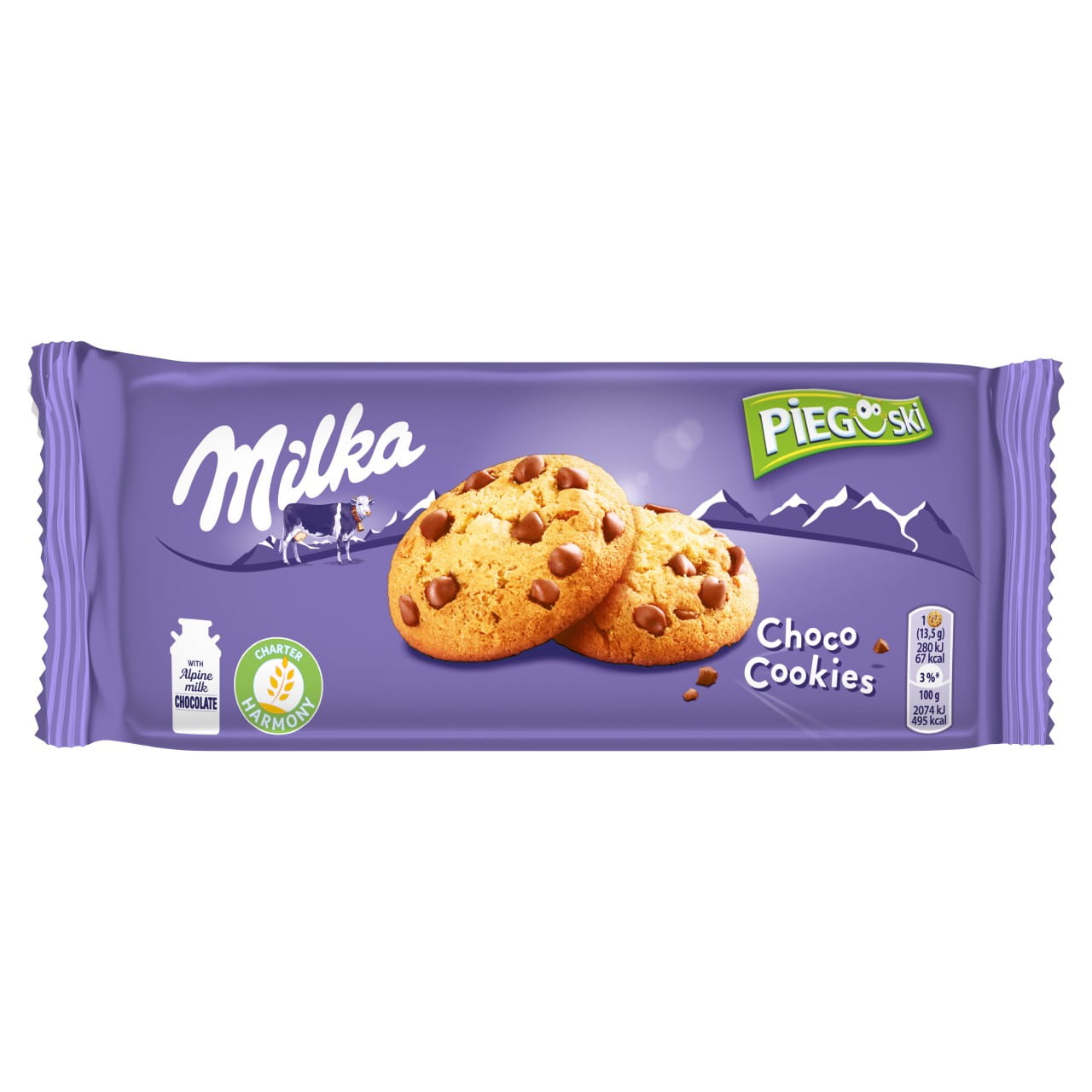 Ciasteczka z kawałkami czekolady mlecznej z mleka alpejskiego.