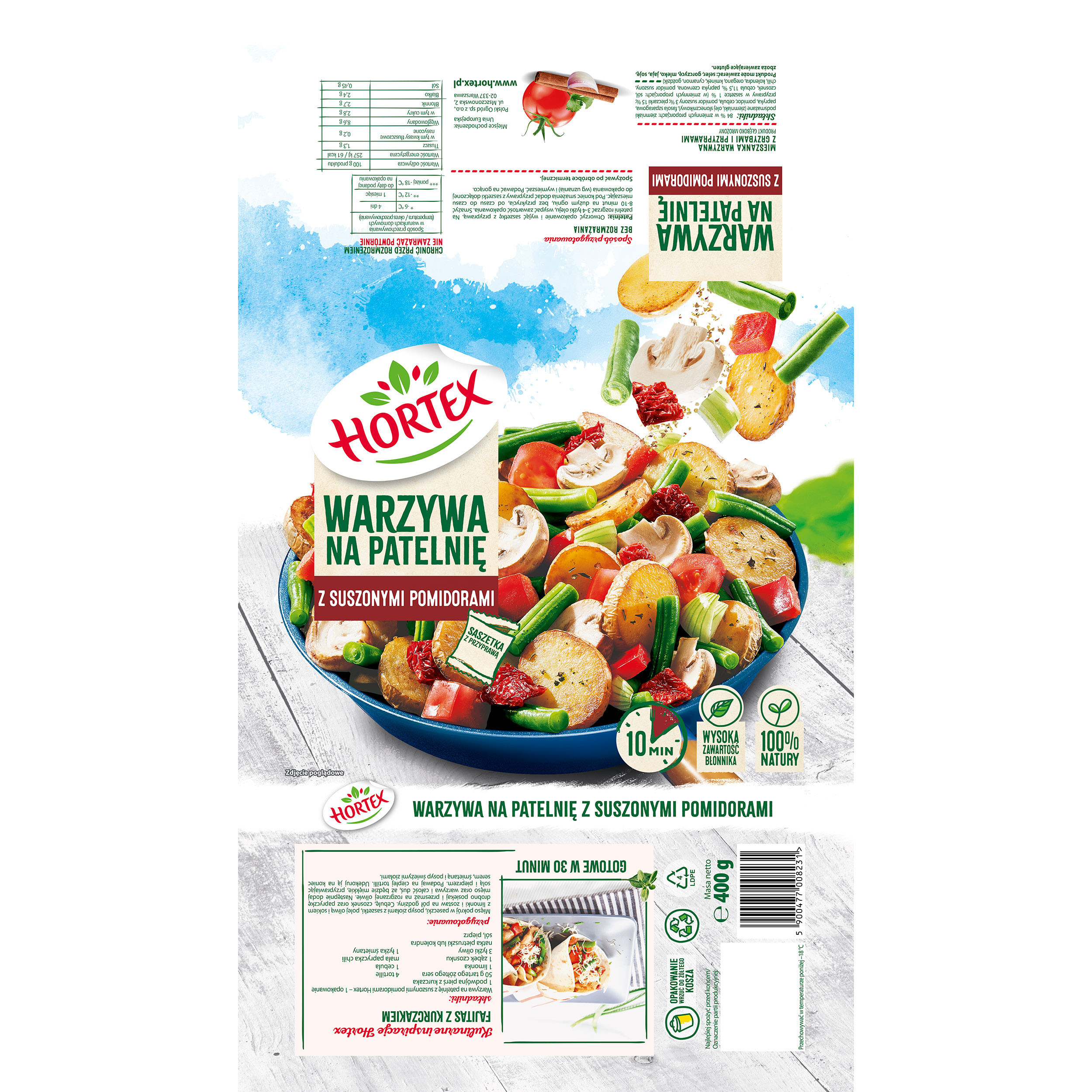 Warzywa na patelnię Hortex to zarówno pyszne warzywne danie samo w sobie, jak również doskonałe źródło wielu smakowitych inspiracji kulinarnych - możesz użyć ich do makaronów, zapiekanek… Na co tylko przyjdzie Ci ochota. W ich skład wchodzą: ziemniaki podsmażane, fasolka szparagowa, pieczarki, papryka, pomidory i cebula. Całość smaku dopełnia dodatek suszonych pomidorów oraz starannie dobrana mieszanka przypraw.