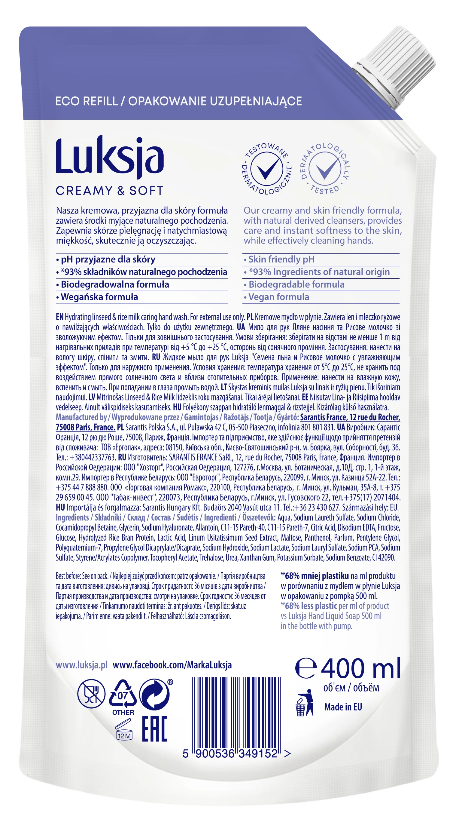 Mydło w płynie zapas creamy&soft len i mleczko ryżowe 400ml+100ml