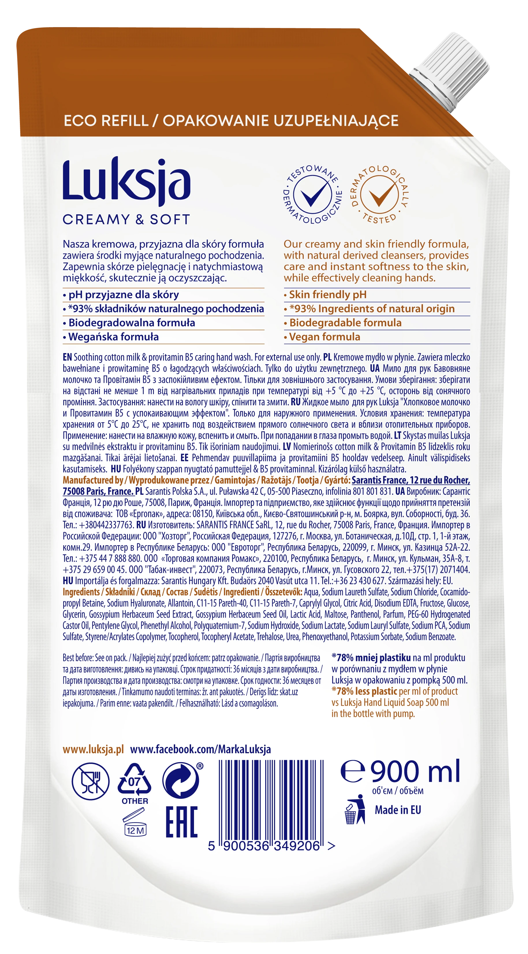 Mydło w płynie zapas creamy&soft mleczko bawełniane i prowitamina b5 900ml