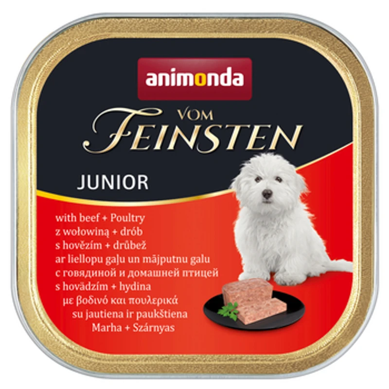 Animonda vom Feinsten Junior to obietnica pysznego, zdrowego oraz zbilansowanego żywienia na najwyższym poziomie przeznaczonego dla szczeniaczków w wieku od momentu odstawienia od mleka matki do 12 miesiąca życia. Karma występuje w wielu smakach, które można mieszać i zamieniać, aby zaspokoić psie podniebienia.