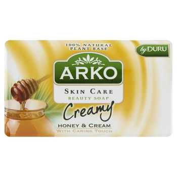 ARKO Miód to kremowe mydło w kostce wzbogacone w miód, cenne składnik o nadzwyczajnych właściwościach regeneracyjnych, a także bakteriobójczych i przeciwzapalnych. Pielęgnacyjna formuła ARKO pomaga uzyskać efekt miękkiej i gładkiej i nawilżonej skóry. Mydło ARKO w kontakcie z wodą wytwarza puszystą, kremową pianę, która zapewnia dokładne oczyszczenie. Zawarte w formule łagodne środki czyszczące pomagają skórze zachować nawodnienie, a miód chroni ją przed utratą witalności i bakteriami.
