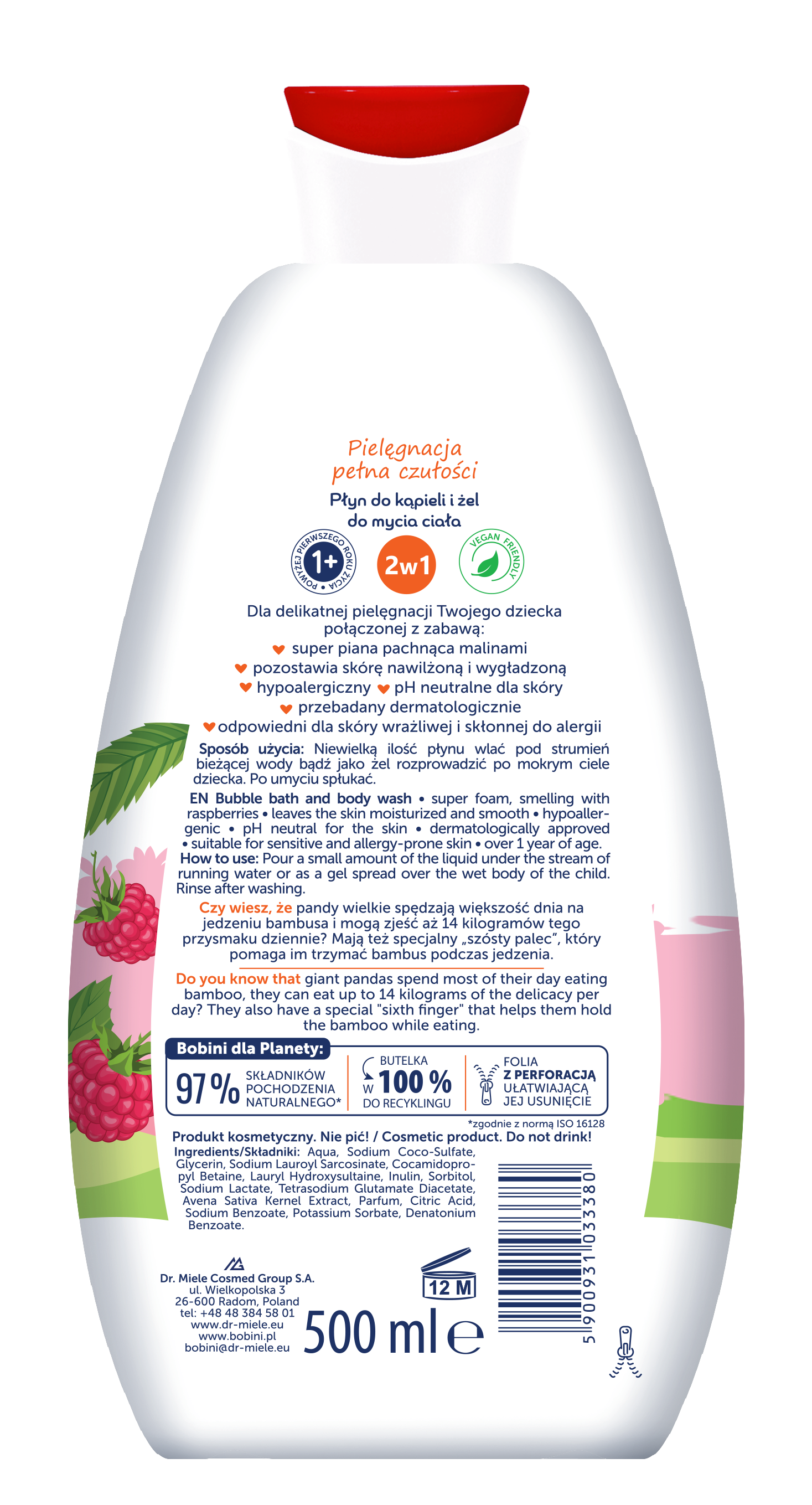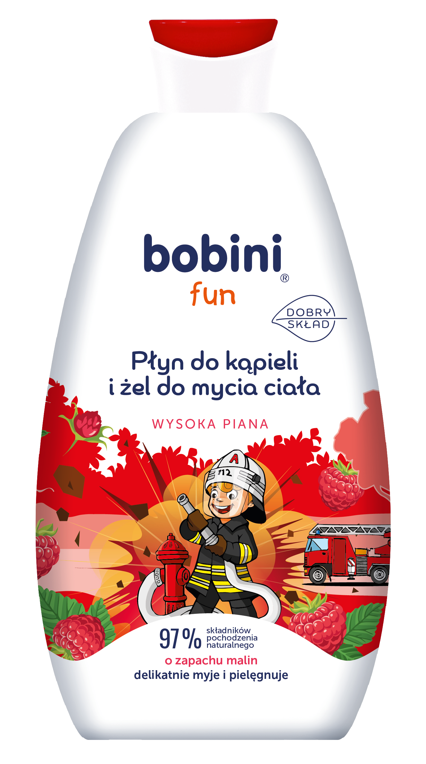 BOBINI Fun Płyn do kąpieli i żel do mycia Wysoka piana o zapachu malin 500ml