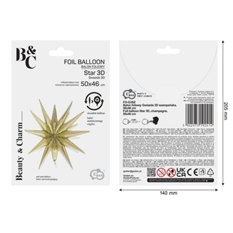 | Krótki opis marketingowy | Balon foliowy gwiazda 3d szampański |