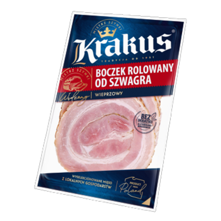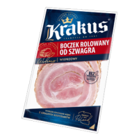 Boczek rolowany wieprzowy wędzony parzony. Opakowanie MAP 100 g.