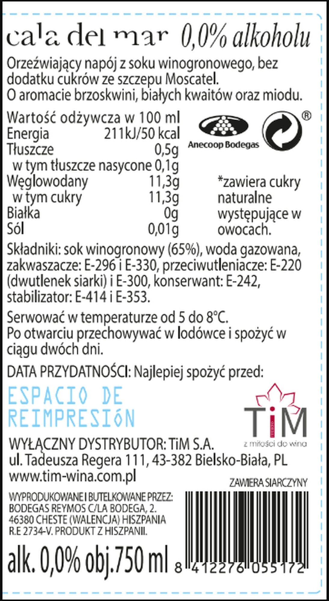 | Składniki | Sok winogronowy, woda gazowana, zakwaszacze, przeciwutleniacze, dwutlenek siarki, konserwant, stabilizator. |
