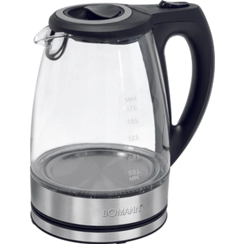 Czajnik Bomann WKS 6032 CB o pojemności 1.7 litra został wykonany wysokiej jakości stali nierdzewnej, szkła żaroodpornego oraz tworzywa sztucznego w kolorze czarnym. Posiada płytę grzejną o mocy 2200 W, zewnętrzny wskaźnik poziomu wody, bezpieczną odchylaną pokrywkę z blokadą, podstawę z wysuwanym przewodem, lampkę kontrolną podświetlaną na niebiesko, filtr antyosadowy wyjmowany w celu płukania oraz automatyczny włącznik/wyłącznik (z możliwością ręcznego wyłączenia). Bezpieczeństwo podczas grzania wody zapewnia zabezpieczenie przed przegrzaniem oraz gotowaniem bez wody.