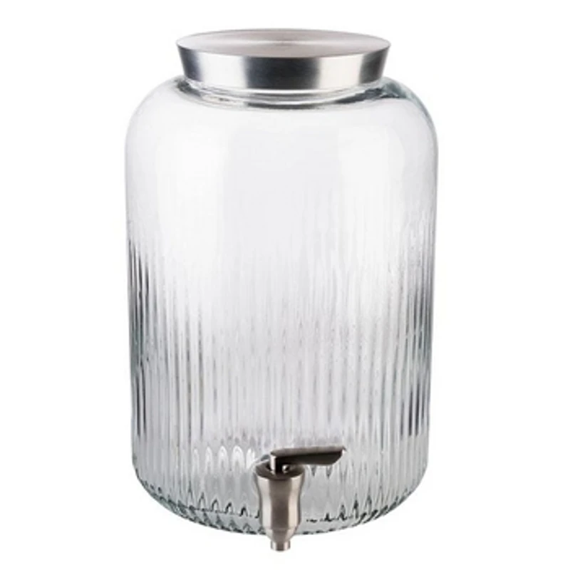 Dyspenser do soków z kolekcji BUFET to elegancki produkt marki APS. Model wykonany jest z wytrzymałego szkła o ciekawej strukturze oraz kranika i pokrywy wykonanej ze stali nierdzewnej. Dodatkowo pod pokrywą znajduje się silikon dla większego bezpieczeństwa. Minimalistyczny w wyglądzie dyspenser wpasuje się w każdy stół bufetowy. Dozowanie napojów odbywa się za pomocą kranika.