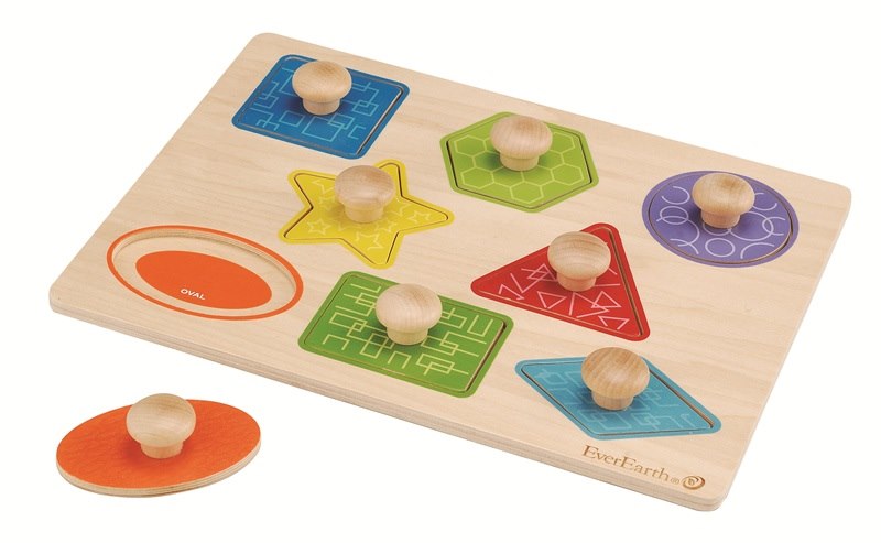 Drewniana układanka z uchwytami kształty od 18m-ca (30x22.5x1.5cm) fsc