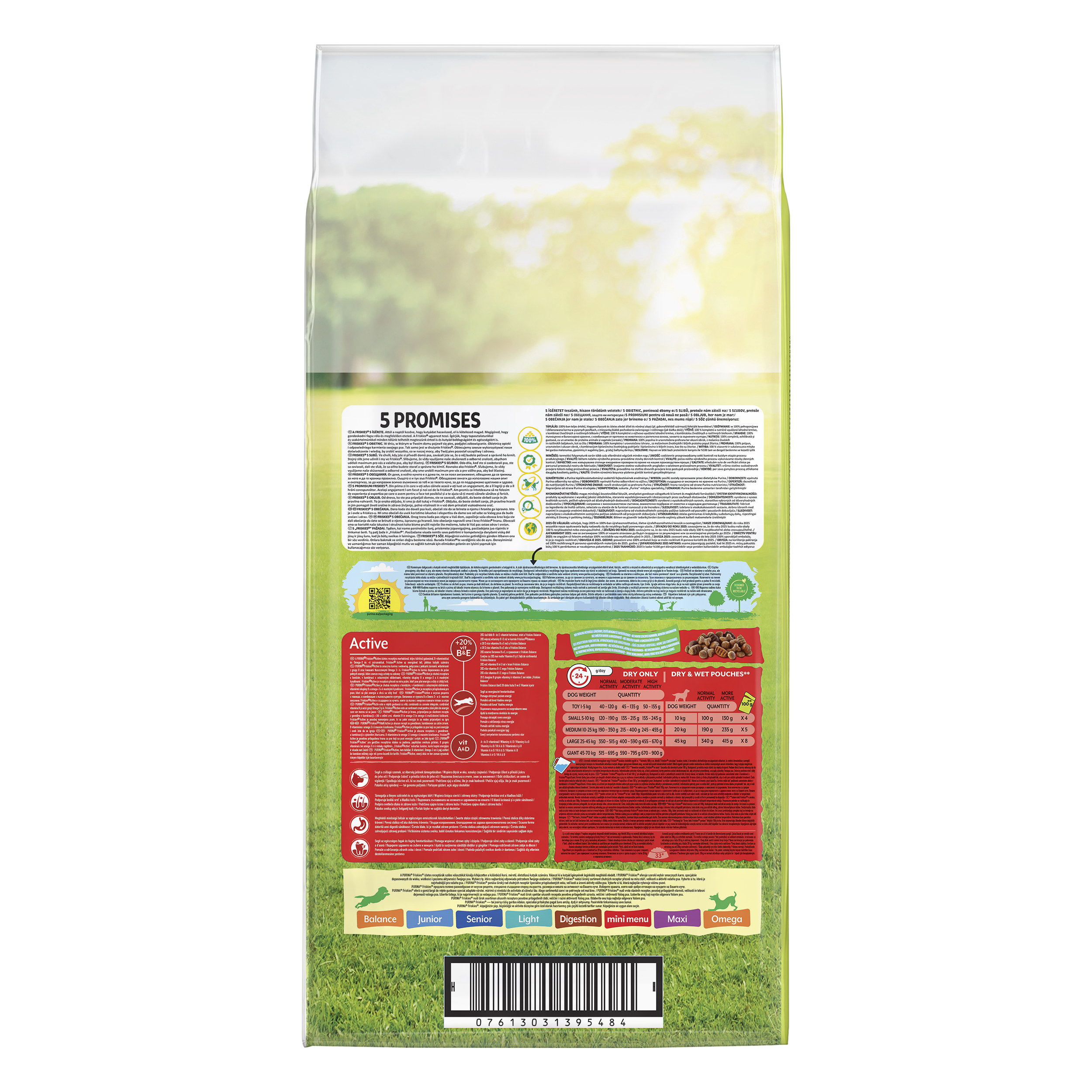 Purina Friskies Vitafit Active to smaczna karma z wołowiną, połączona z pełnymi ziarnami, witaminami z grupy B oraz kwasami tłuszczowymi Omega 3 i 6. Friskies Active to karma dopasowana do psów pełnych energii, które zawsze mają ochotę na zabawę.