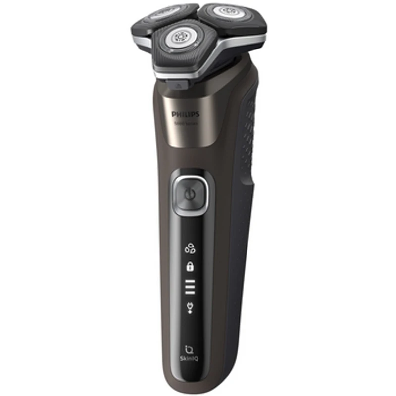 Golarka Philips S5886/30 z serii 5000 zapewnia doskonałe golenie, a teraz umożliwia strzyżenie jeszcze większej liczby włosów za jednym pociągnięciem. Dzięki zaawansowanej technologii SkinIQ golarka wykrywa gęstość włosów i dostosowuje się do niej, zapewniając większy komfort skóry. Ostrza SteelPrecision zapewniają do 90 000 ruchów ostrzy na minutę, tnąc więcej włosów przy każdym pociągnięciu. 45 wydajnych, samoostrzących ostrzy wyprodukowanych w Europie. Inteligentny czujnik zarostu odczytuje grubość włosów 250 razy na sekundę. Technologia automatycznie i dynamicznie dostosowuje moc cięcia, aby zapewnić bezproblemowe i łagodne golenie. W pełni elastyczne głowice obracają się o 360°, aby podążać za konturem twarzy. Optymalny kontakt ze skórą zapewnia dokładne i wygodne golenie. Kształt głowic golących został zaprojektowany z myślą o precyzji. Powierzchnia została wzbogacona o kanały Hair-Guide, które układają włosy w pozycji wygodnej do cięcia. Czyszczenie golarki jest bardzo łatwe. Wystarczy jedno naciśnięcie przycisku, aby otworzyć głowicę golącą, którą następnie można opłukać wodą. Wet & Dry umożliwia wybór komfortowego golenia na sucho lub golenia na mokro z użyciem żelu lub pianki nawet pod prysznicem. Dopełnij swój wygląd, używając wysuwanego, precyzyjnego trymera. Jest zintegrowany z korpusem golarki, dzięki czemu z łatwością przytniesz wąsy lub baki.