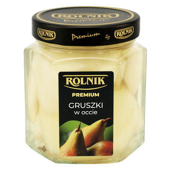 | Składniki | Gruszki, woda, cukier, ocet spirytusowy, regulator kwasowości: kwas cytrynowy, przyprawy. |