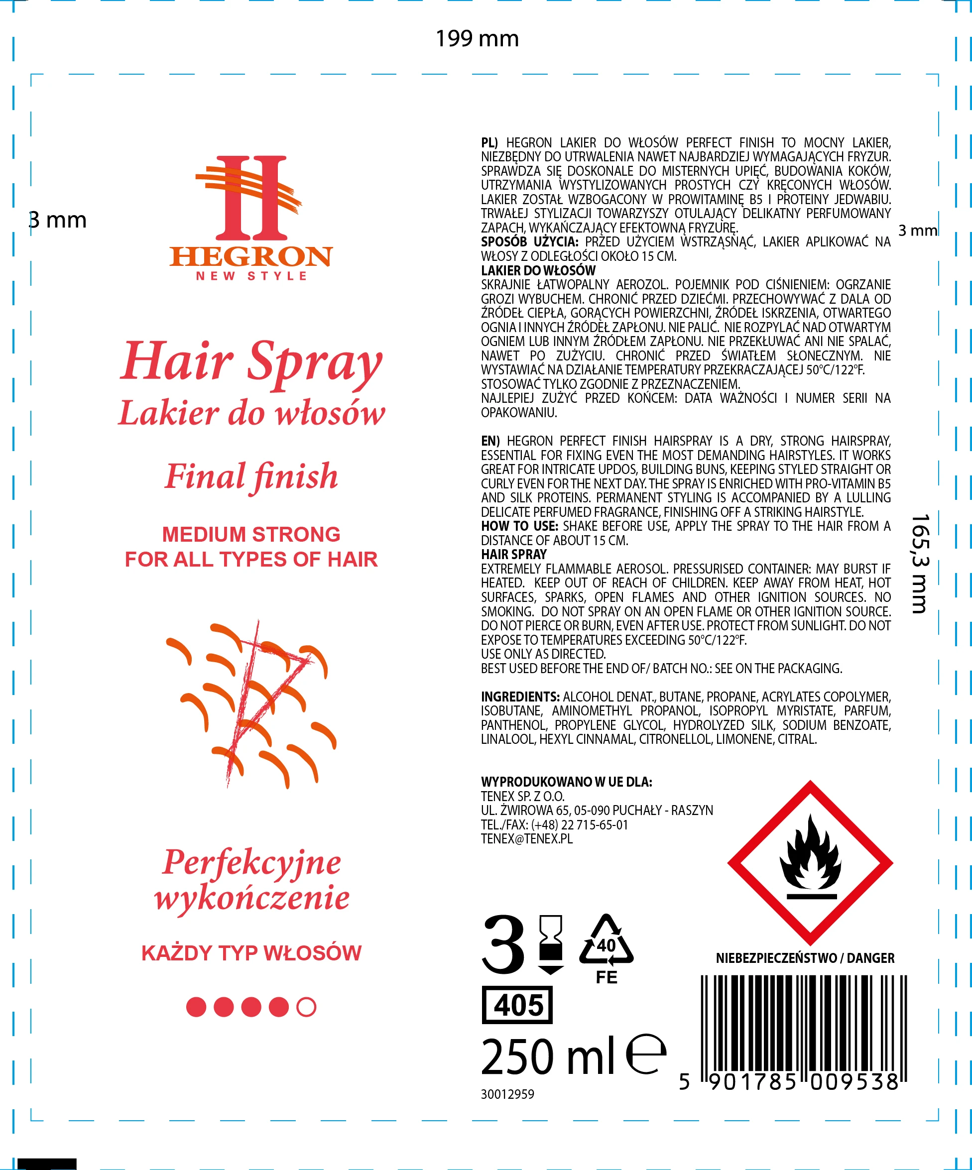 HEGRON LAKIER DO WŁOSÓW PERFECT FINISH TO MOCNY LAKIER, NIEZBĘDNY DO UTRWALENIA NAWET NAJBARDZIEJ WYMAGAJĄCYCH FRYZUR. SPRAWDZA SIĘ DOSKONALE DO MISTERNYCH UPIĘĆ, BUDOWANIA KOKÓW, UTRZYMANIA WYSTYLIZOWANYCH PROSTYCH CZY KRĘCONYCH WŁOSÓW. LAKIER ZOSTAŁ WZBOGACONY W PROWITAMINĘ B5 I PROTEINY JEDWABIU. TRWAŁEJ STYLIZACJI TOWARZYSZY OTULAJĄCY DELIKATNY PERFUMOWANY ZAPACH, WYKAŃCZAJĄCY EFEKTOWNĄ FRYZURĘ.