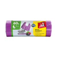 Nasze worki zapachowe z systemem wiązania T-shirt dostępne są w trzech kolorach oraz trzech pojemnościach: 20L, 35L, 60L. Worek w kolorze fioletowym o pojemności 60 litrów dobrze sprawdzi się w kuchni, oraz w większych koszach w pomieszczeniach biurowych. Dodatkowo na każdym worku znajduje się nadruk z informacją o jego litrażu, ilości sztuk w rolce oraz wymiarach worka.