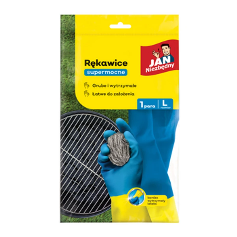 Rękawice supermocne Jan Niezbędny, rozmiar L, 1 para, są doskonałe do mycia naczyń z trudnymi zabrudzeniami.