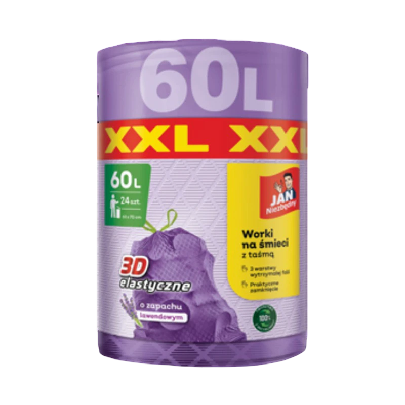 Jan Niezbędny Worki LD 3D taśma Lawenda XXL 60L 24szt