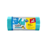 Nasze worki zapachowe z systemem wiązania T-shirt dostępne są w trzech kolorach oraz trzech pojemnościach: 20L, 35L, 60L. Worek w kolorze turkusowym o pojemności 35 litrów dobrze sprawdzi się w kuchni, oraz w koszach w pomieszczeniach biurowych. Dodatkowo na każdym worku znajduje się nadruk z informacją o jego litrażu, ilości sztuk w rolce oraz wymiarach worka.