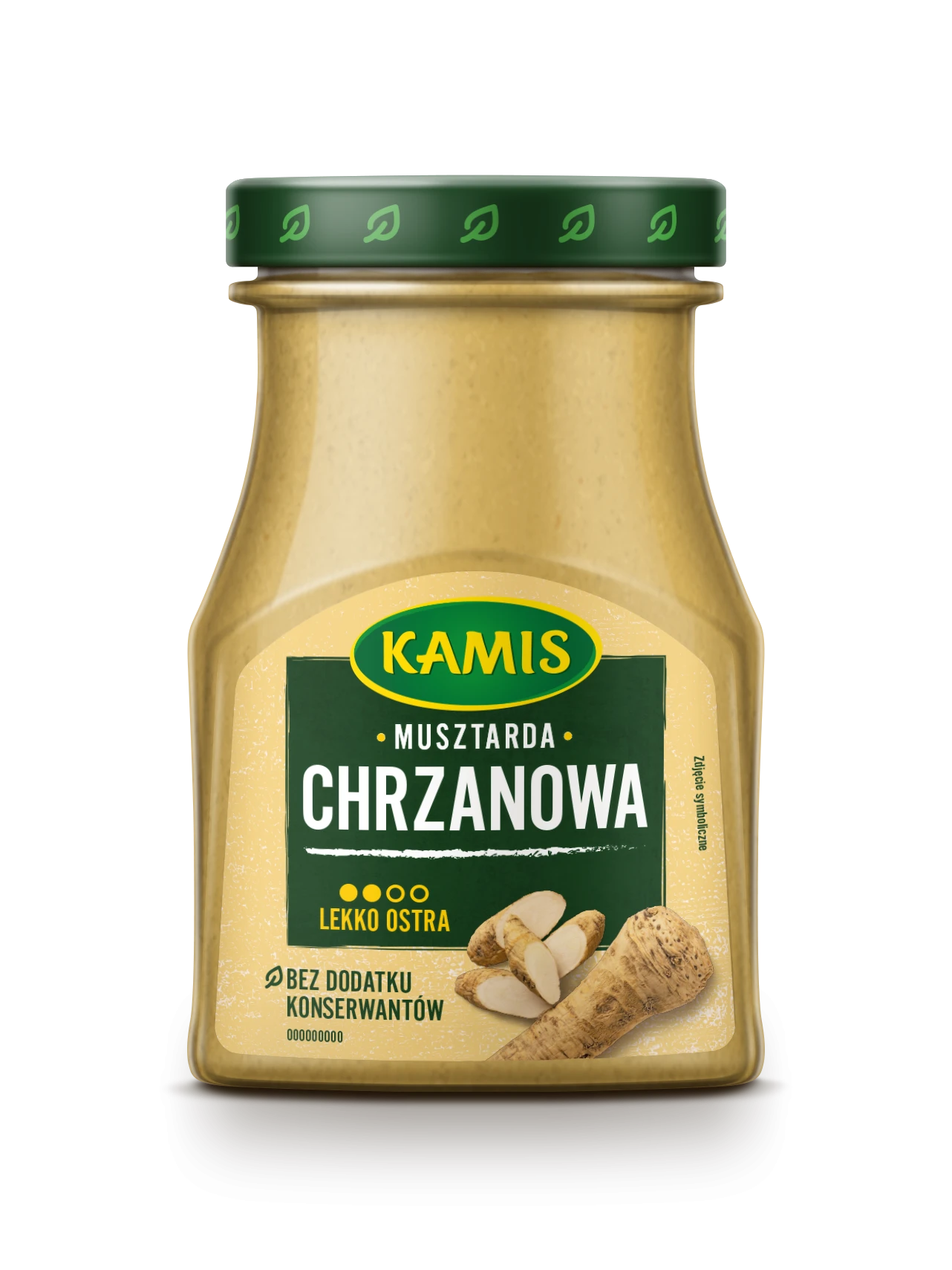 Musztarda chrzanowa – musztarda z wyraźnie wyczuwalna nutą chrzanu. Jednorodna i jasnokremowa; charakterystyczny smak chrzanu podkreślony został dodatkowo unikatową mieszanką ziołowo - korzenną. Wyborny dodatek do pieczeni, dań z drobiu i wędlin oraz sosów zimnych i gorących.