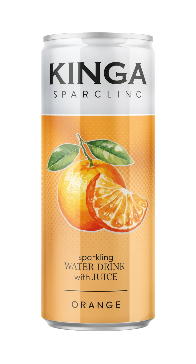 Gazowany owocowy napój o smaku pomarańczowym przygotowany na bazie krystalicznie czystej wody i soku owocowego.