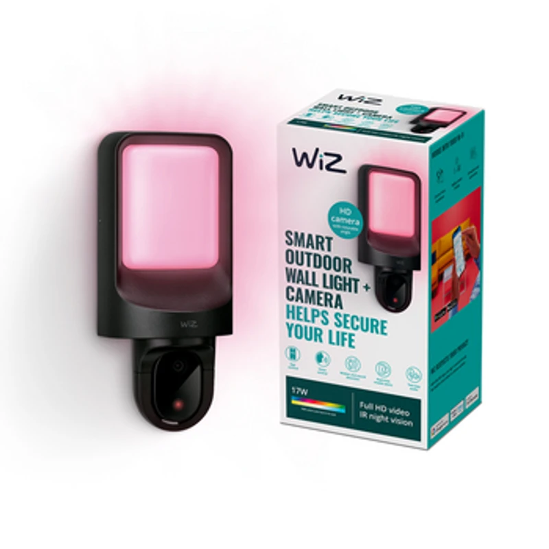 Co się tam dzieje? Nie daj się zaskoczyć ciemnościom, dzięki inteligentnemu kinkietowi zewnętrznemu WiZ ze zintegrowaną kamerą. Światło naszego odpornego na warunki atmosferyczne kinkietu z kamerą włącza się po wykryciu ruchu, co pozwala zaskoczyć potencjalnych intruzów lub pomóc Ci wygodnie wejść do domu po zapadnięciu zmroku.