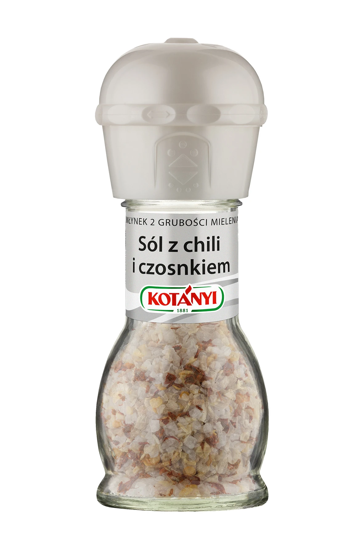 Młynek sól z chili i czosnkiem. Dwie grubości mielenia