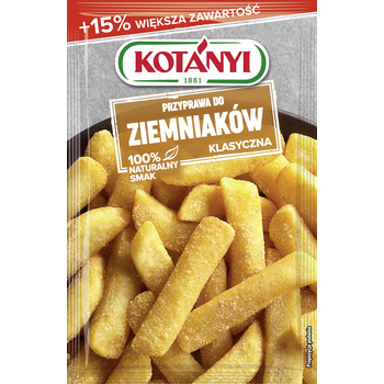 Ze skórką lub bez, plasterki lub ćwiartki, wszystkie kształty ziemniaków przyprawisz mieszanką do Ziemniaków KOTÁNYI w mgnieniu oka. Niepowtarzalna kompozycja ziół i przypraw, takich jak rozmaryn i tymianek oraz cebula i czosnek, jest gwarancją udanego dania. // Zastosowanie: do ??ziemniaków smażonych, zapiekanek ziemniaczanych, ziemniaków pieczonych lub frytek.