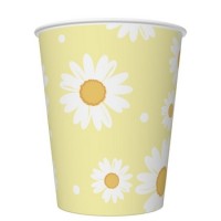 Kubeczki papierowe, żółte, stokrotki, 250 ml, 6 szt.