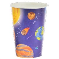 "Kubki papierowe z nadrukiem planet. Idealnie pasują na urodziny, przyjęcia i bale dziecięce z motywem kosmosu. W połączeniu z innymi produktami z tej serii tworzą piękną oprawę stołu. Wykonane w technologii, dzięki której nie rozmiękają w trakcie użytkowania. Wysoka jakość materiałów zapewnia komfortowe korzystanie bez wpływu na smak napojów. Produkt posiada certyfikat FSC®, co oznacza, że surowce wykorzystane do jego produkcji zostały pozyskane w zgodzie z odpowiedzialnym i legalnym korzystaniem ze światowych zasobów leśnych oraz pochodzących z innych kontrolowanych źródeł. Stosować zgodnie z przeznaczeniem. Artykuł jednorazowego użytku.