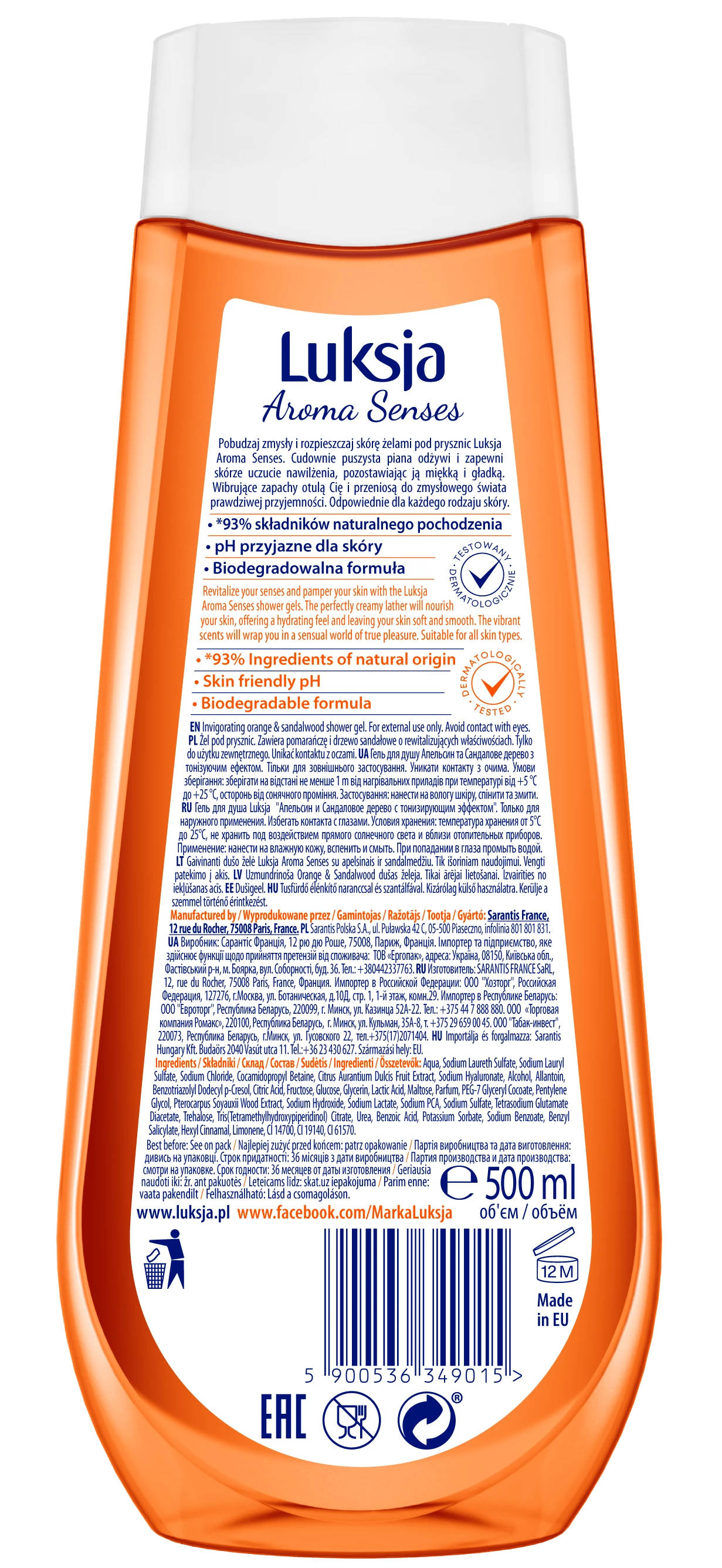 Luksja Aroma Senses Żel pod prysznic Pomarańcza i Drzewo sandałowe 500 ml