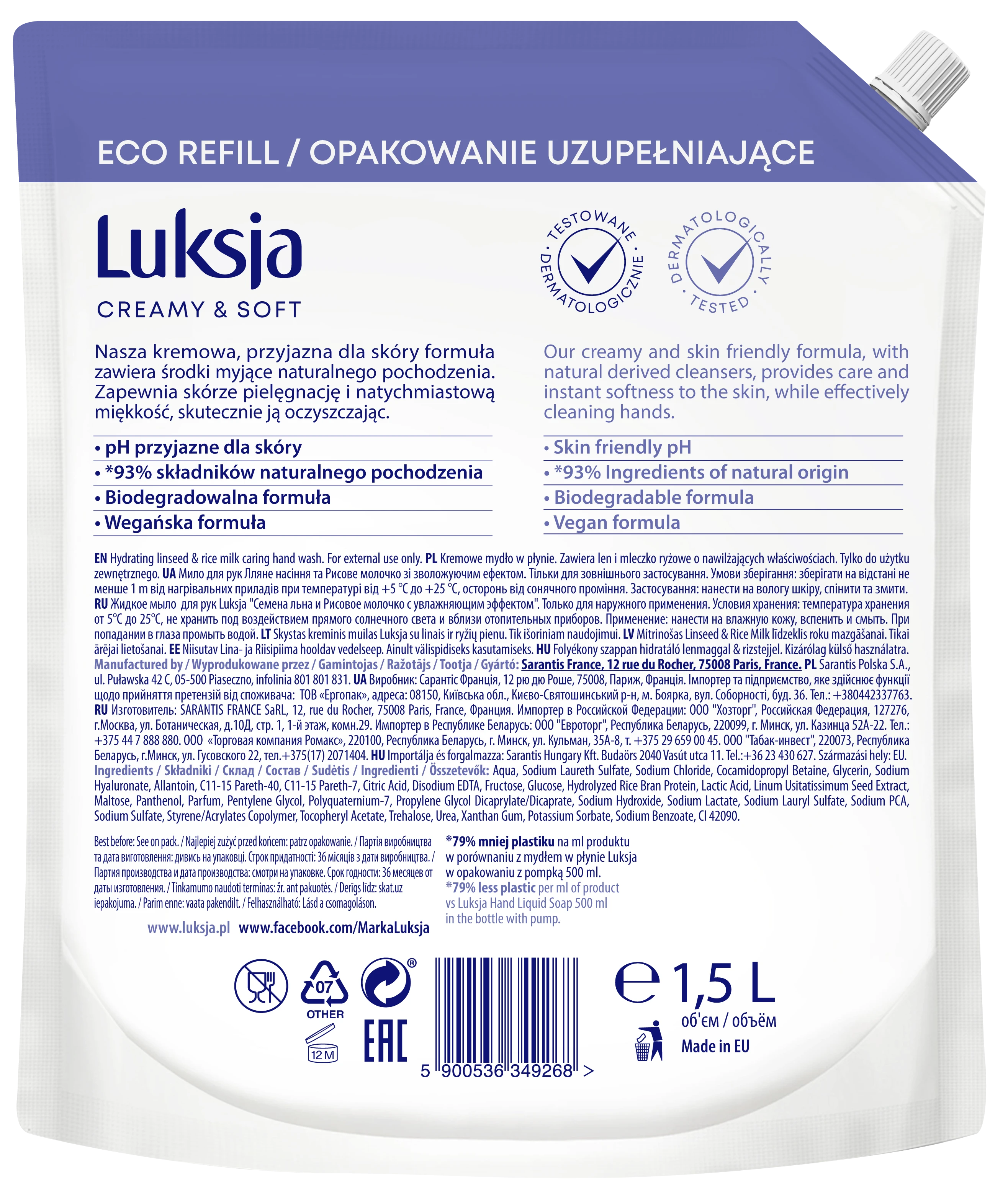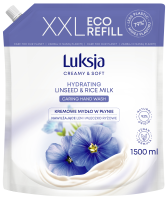 Luksja Creamy & Soft Kremowe mydło w płynie Len i Mleczko ryżowe 1500 ml opakowanie uzupełniające