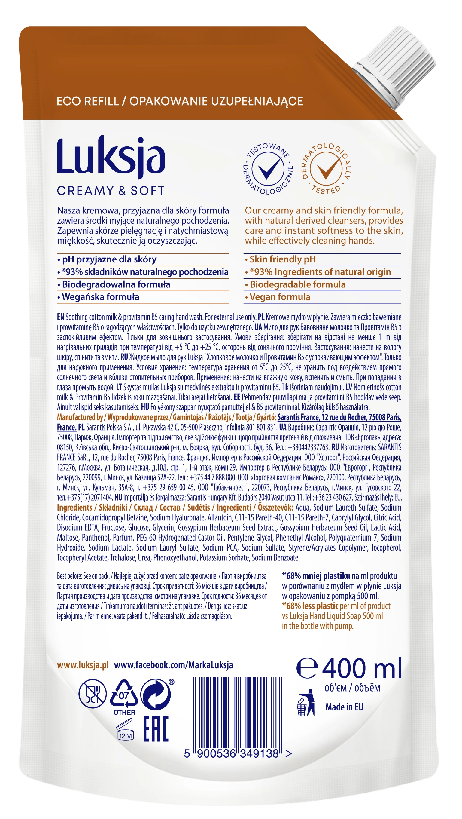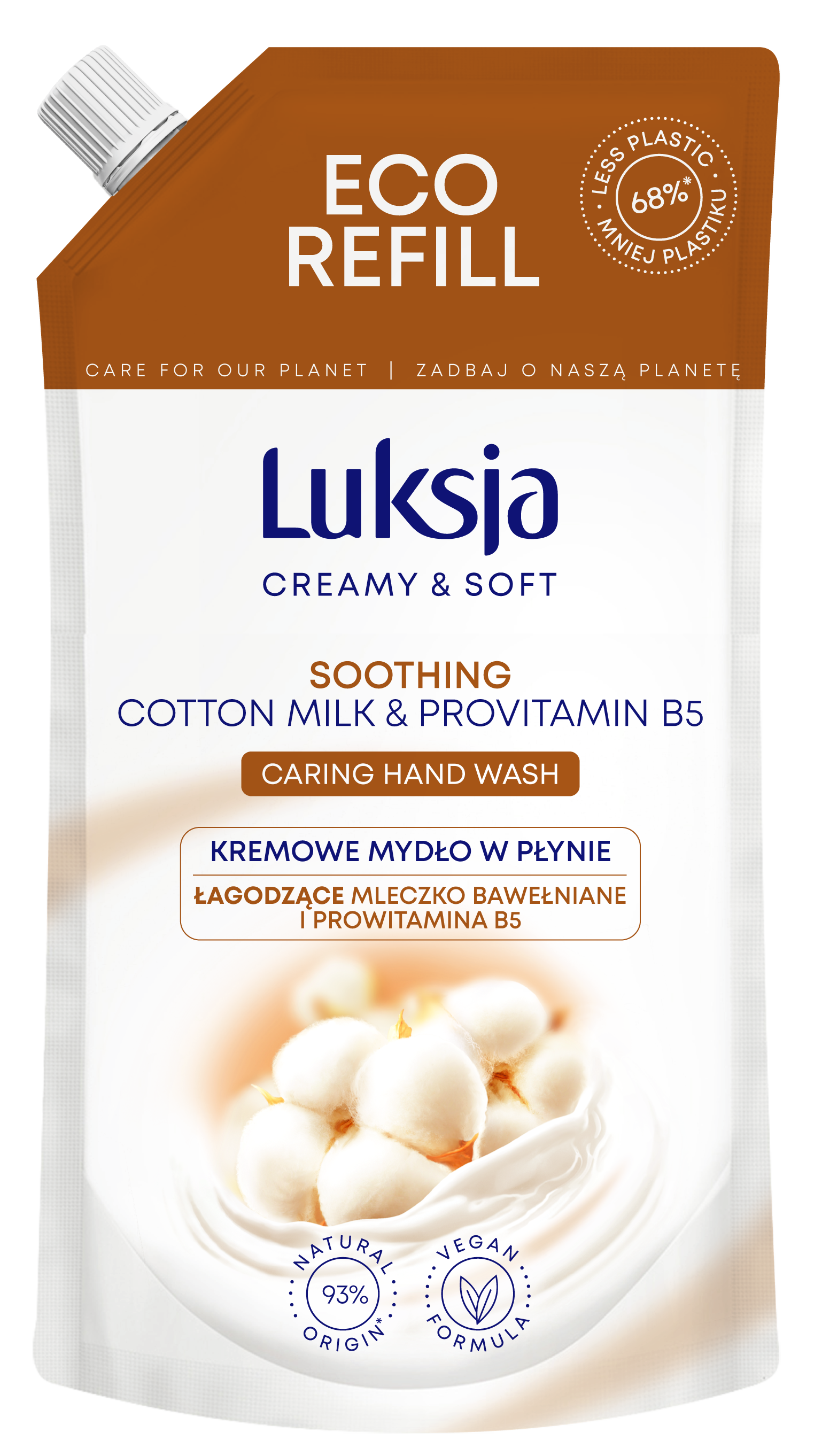 Luksja Creamy & Soft Kremowe mydło w płynie Mleczko bawełniane i Prowitamina B5 400 ml opakowanie uzupełniające