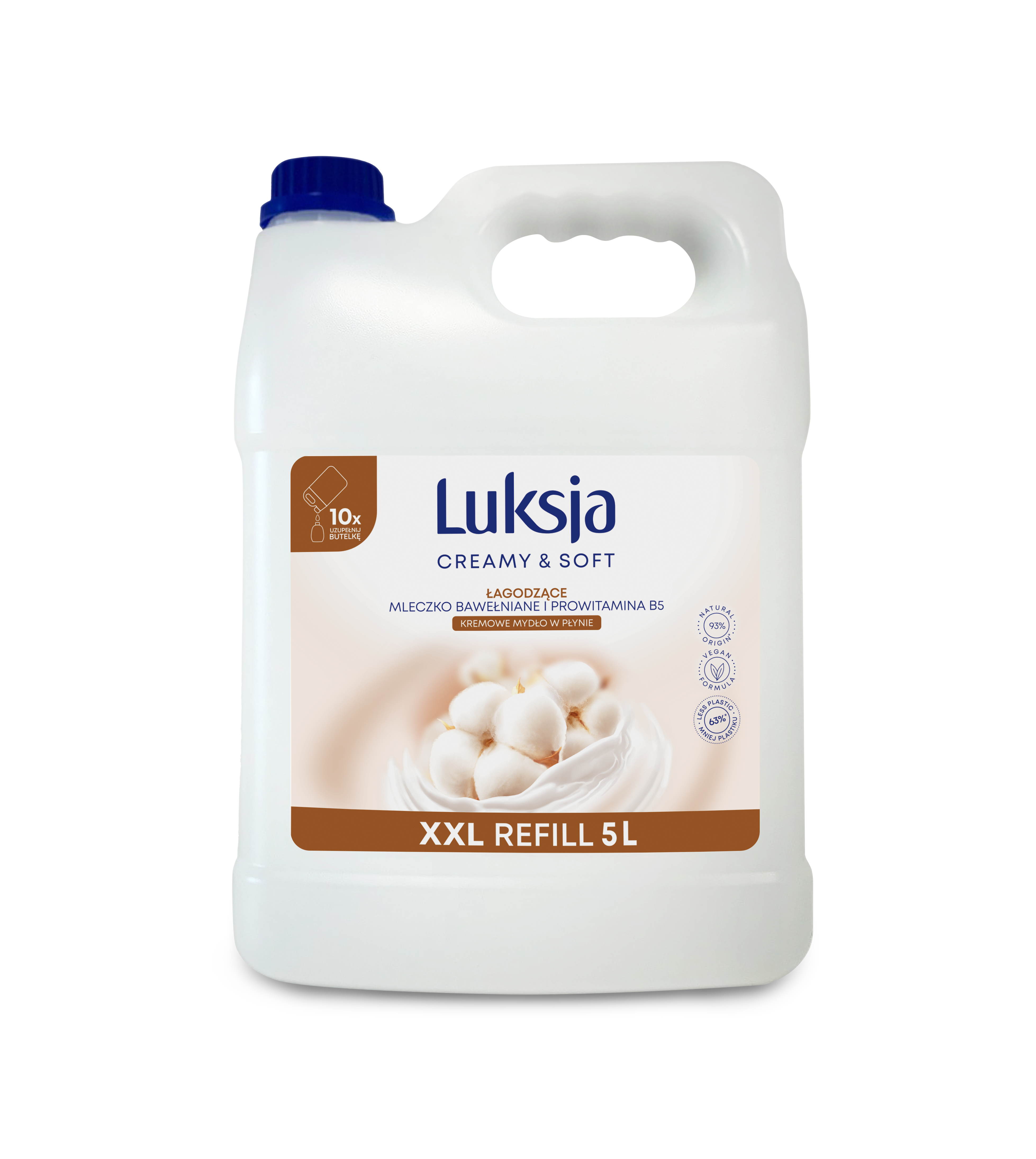 Luksja Creamy & Soft Kremowe mydło w płynie Mleczko bawełniane i Prowitamina B5 5 L opakowanie uzupełniające