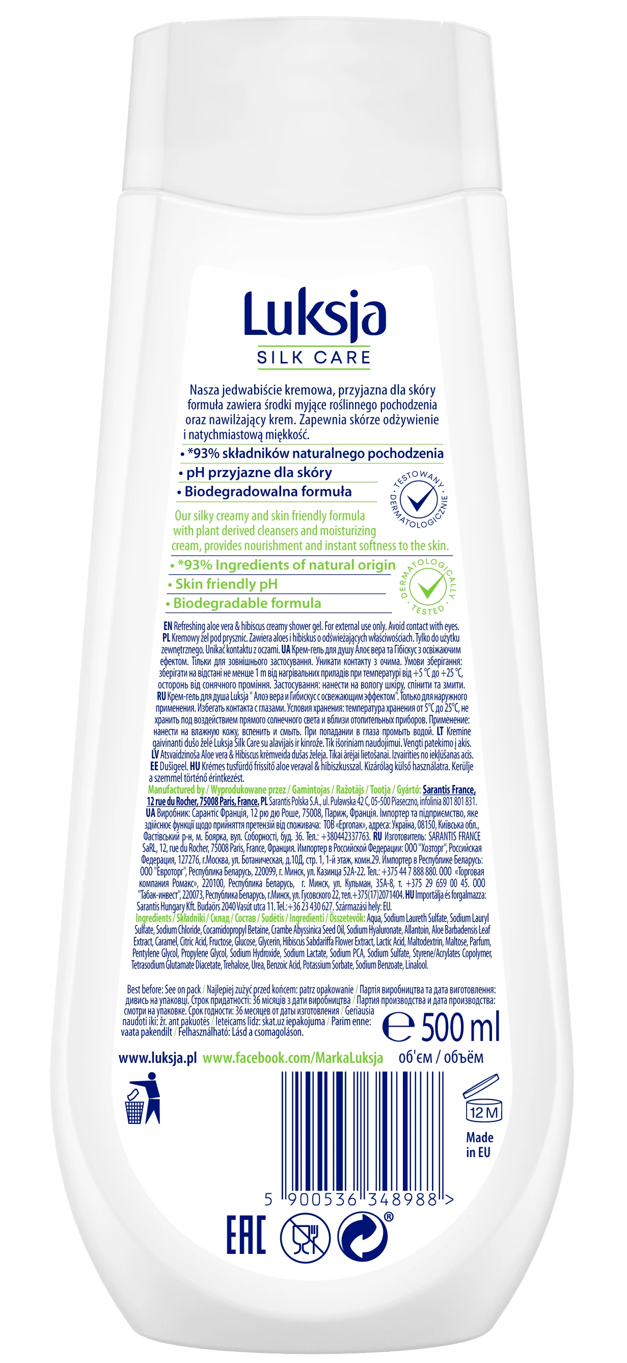 Luksja Silk Care Kremowy żel pod prysznic Aloes i Hibiskus 500 ml