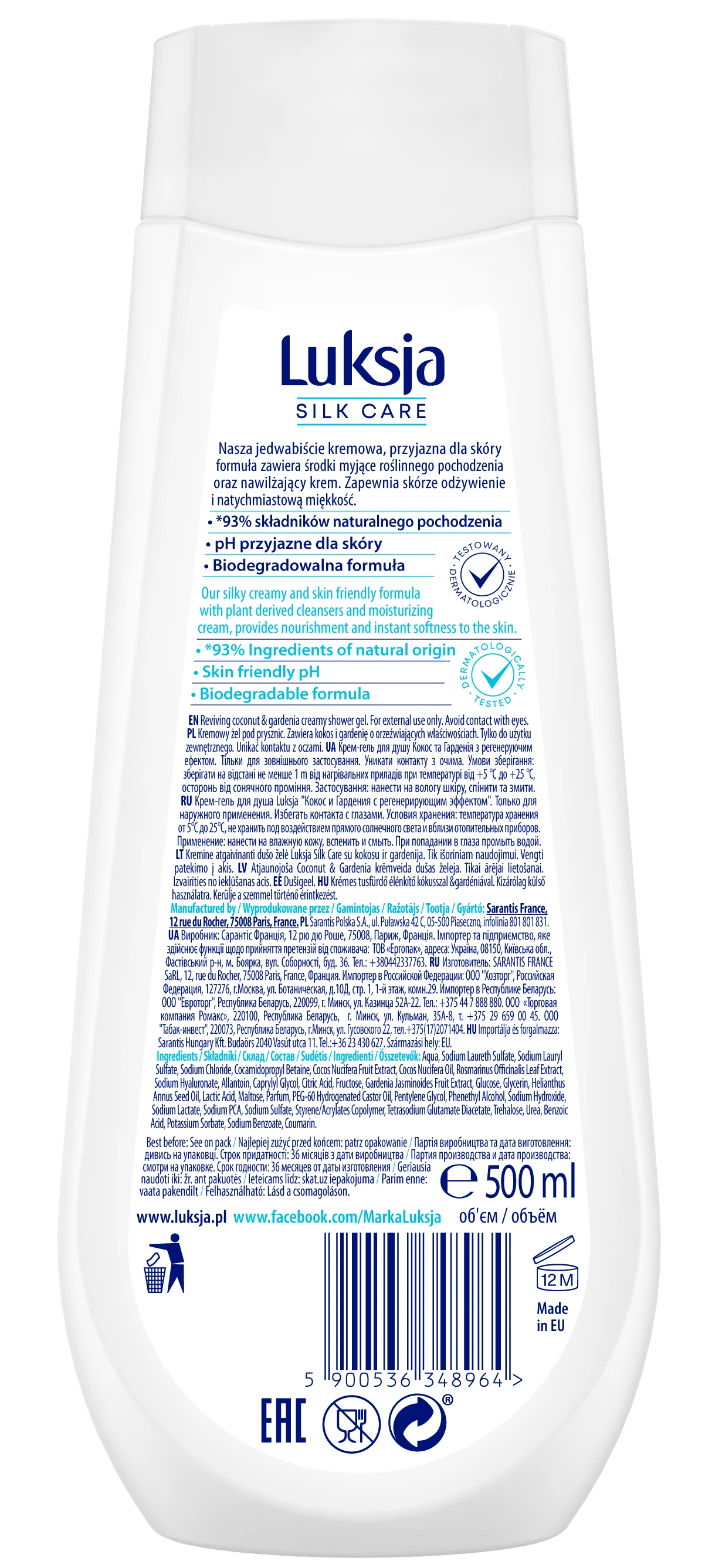 Luksja Silk Care Kremowy żel pod prysznic Kokos i Gardenia 500 ml