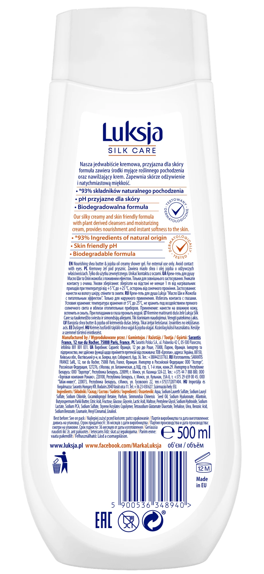 Luksja Silk Care Kremowy żel pod prysznic Masło shea i Olej jojoba 500 ml