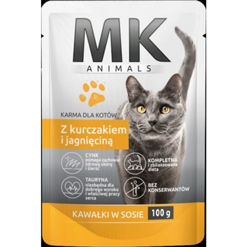 MK Animals saszetka dla kotów z kurczakiem i jagnięciną. Pełnoporcjowa karma dla kotów wszystkich ras. Kawałki w sosie