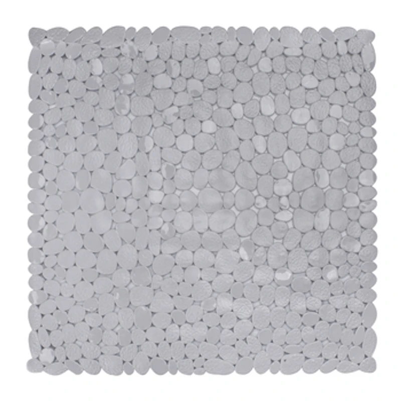 Kwadratowa, szara mata łazienkowa z motywem kamyczków. Posiada przyssawki antypoślizgowe, zapewniające bezpieczeństwo w łazience. Kwadratowa mata łazienkowa polecana jest do brodzików kabin prysznicowych. Czyścić w 30 stopniach, nie prasować, nie czyścić chemicznie, nie wybielać, nie suszyć w suszarce bębnowej.