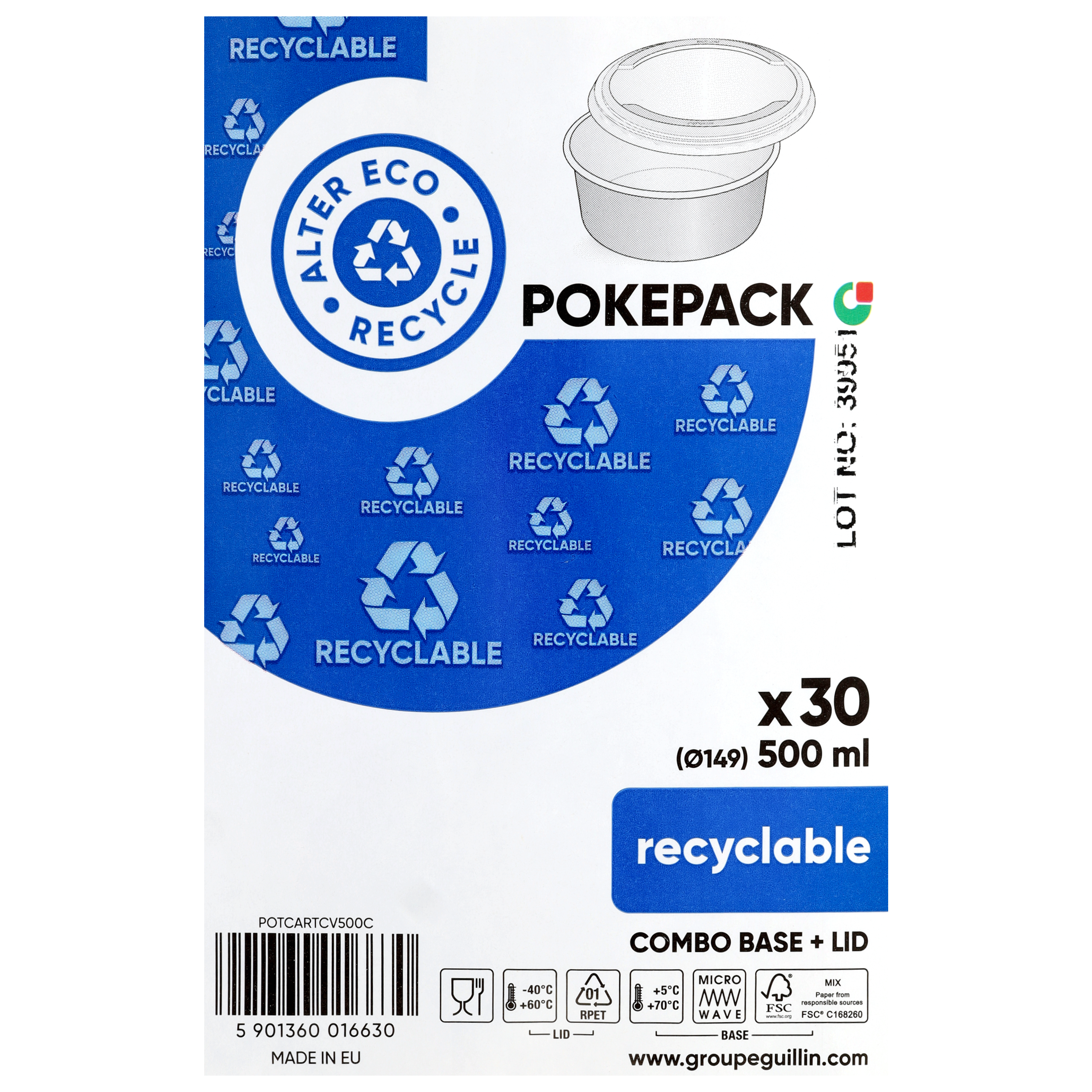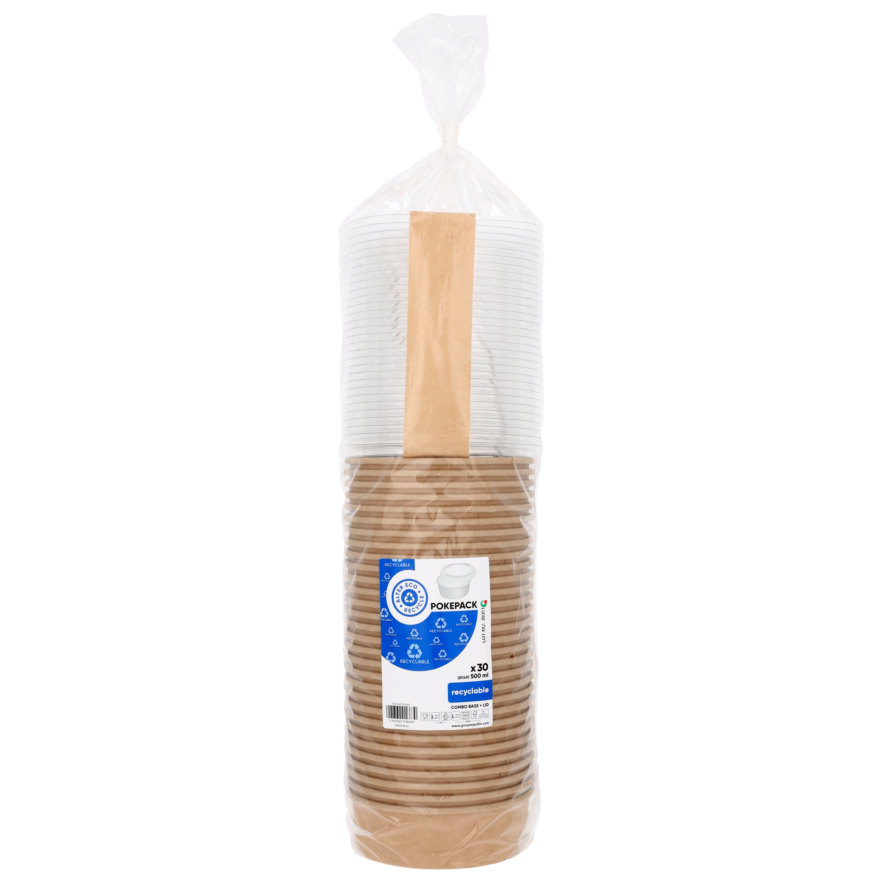 Miski papierowe kraft z przykrywkami PET|500 ml|30 szt.|POKEPACK|Guillin Polska