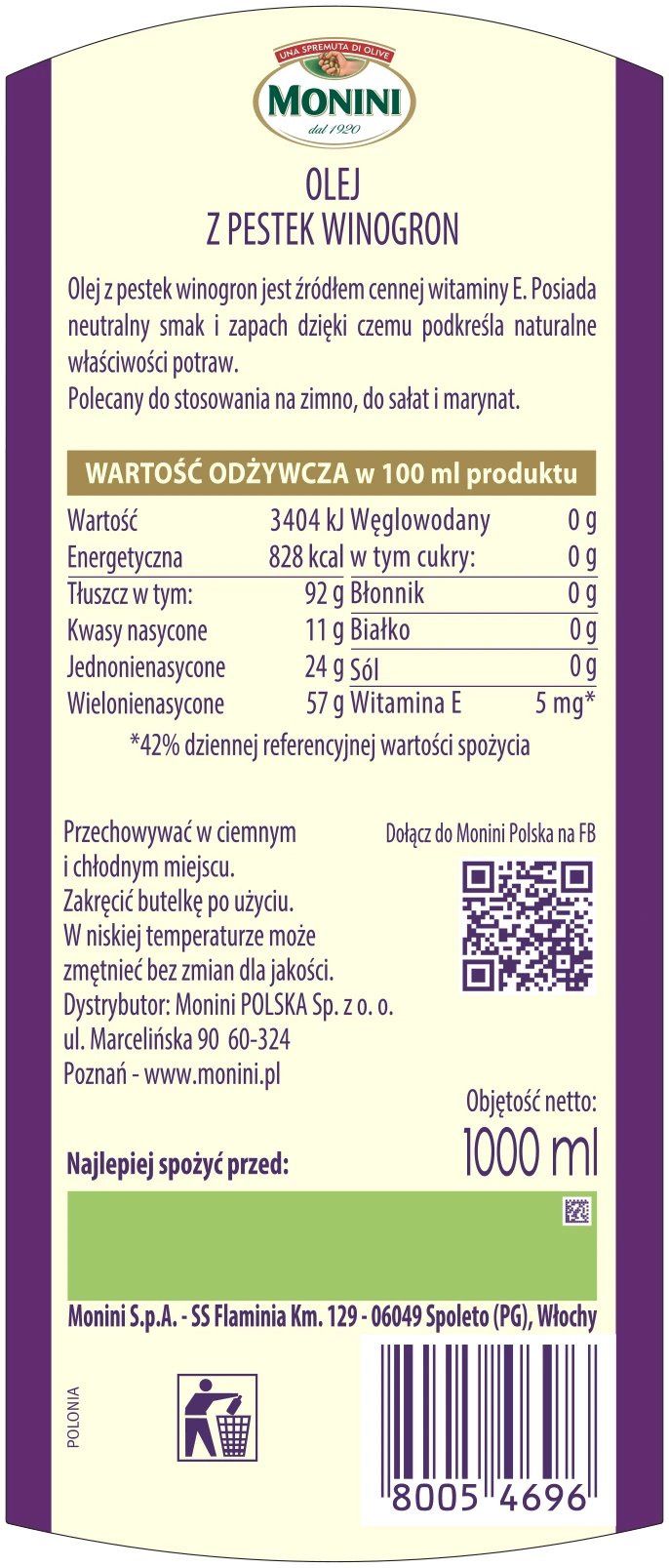 Monini Olej z pestek winogron 1000 ml (promocja)