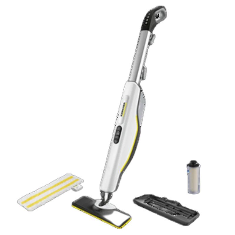 | Krótki opis marketingowy | Smukły mop parowy idealnie uzupełnia dotychczasową linię parownic kärcher. jest łatwy w obsłudze i pozwala czyścić wszystkie rodzaje zabezpieczonych podłóg twardych oraz odświeżać dywany. urządzenie w kolorze białym. |